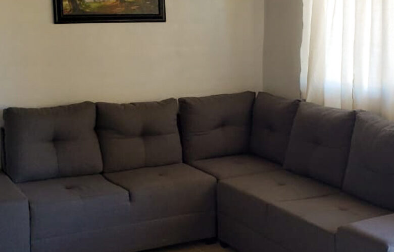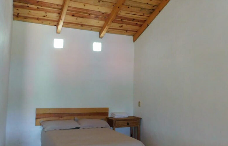 Cuenta con dos habitaciones con una cama matrimonial cada una y 4 cobijas. La cocina equipada incluye refrigerador, parrilla con gas y utensilios básicos para 4 personas.
